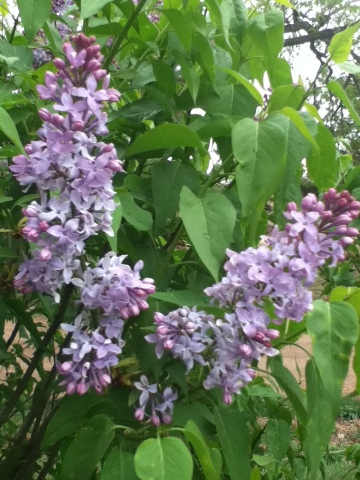 A few signs of spring I thought I'd share...my lilacs in bloom, Grandma Littlefield's mini iris, apple trees with blooms starting to fall off & rhubarb.